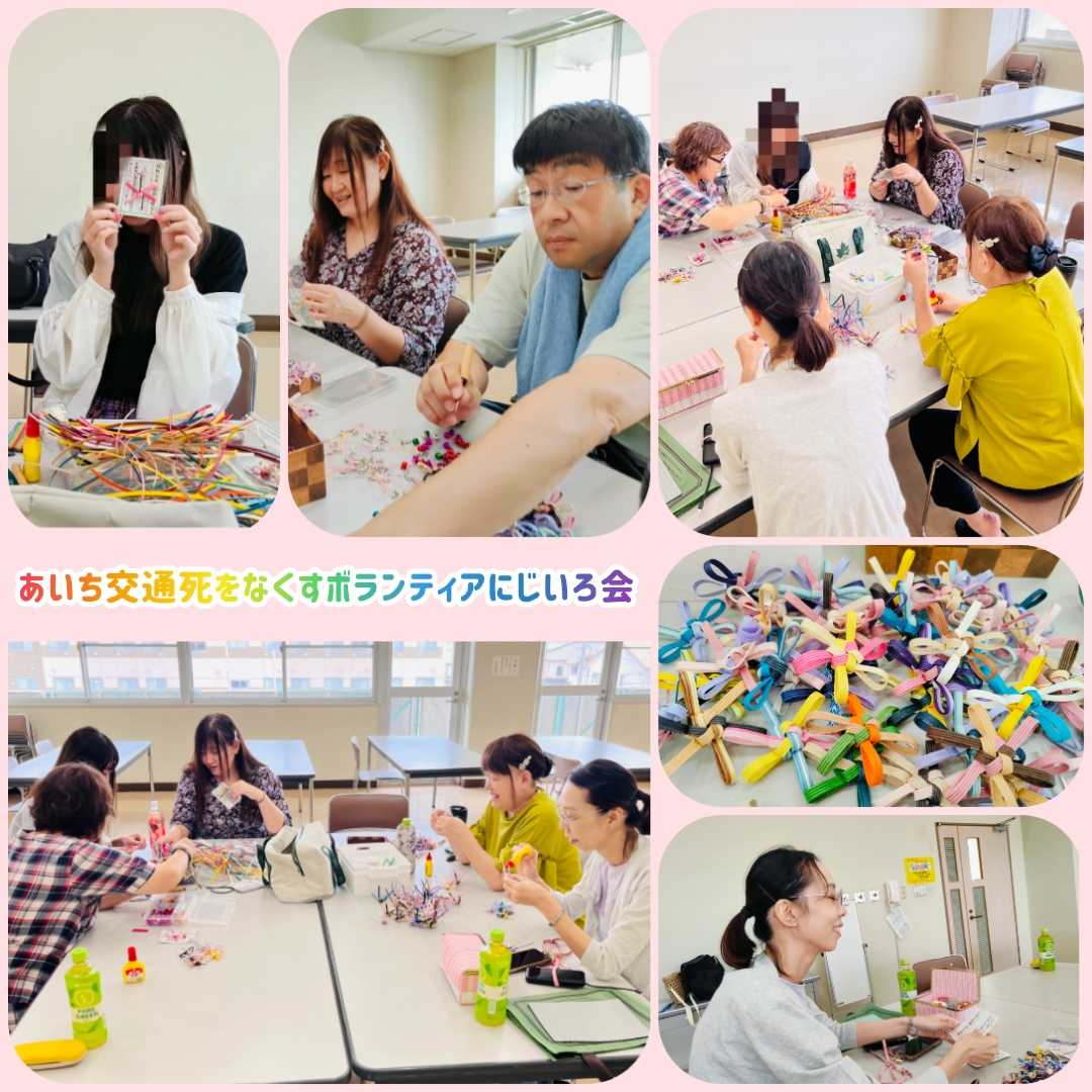 昨日は台風15号の影響がまだありましたが、午後から知立ボランティアの日でした。ニュースでは台風15号の大雨の影響で愛知県の三河地方の知立市や安城市や岡崎市では冠水した地域もあると報道されていました。それで雨風が酷かったり参加される方がいなかったら中止にしようかと思っていたのですが3名のメンバーさんが参加して下さると連絡がありました。天気予報では昨日午前中までは雨の予報でしたが午後からは晴れるようだったので、台風はちょっと心配でしたが予定通り知立ボランティア活動を行うことにしました。しかし用事で早く帰られるメンバーさんもいたり私たちも知立市役所と豊田警察署にストラップのお届け依頼が入っていたのでいつもより1時間早く午後3時には終わることにしました。昨日は午前中仕事を終えて家に帰ると少し風が強そうでしたが雨はやみお天気は回復傾向でした。1時半前に知立市福祉の里八ツ田に着くとボランティアメンバーのAさんもちょうど来られたところでした。Aさんはクラフト協会の講師でバッグなどに使ったクラフトテープの残りで花編みをたくさん作って来て下さいました。それで昨日はみんなでその花編みを完成品にしまいした。今ストラップの在庫が少ないので助かりました!!昨日はYちゃんがエステのお客さんの若い娘さんAさんを連れてきてくれました。年齢を聞いたらさえりんと同い年でした。AさんにはボランティアメンバーのNさんがストラップの作り方を教えてくれて可愛らしいストラップを4個作られました。ピンク色が大好きなのもさえりんと一緒です。昨日は1時間半だけでしたがお天気も晴れて無事にボランティア活動がやれて良かったです。(昨日の知立ボランティア活動の様子)午後3時にボランティア活動が終わってみんなと別れてから、知立市役所へ秋の交通安全週間の配布活動用のストラップ300個を届けに行きました。そのあと実家に立ち寄るとAmazon「みんなで応援」プログラムからご支援のクラフトテープが届いていました。毎月送って下さるちぃたんさんありがとうございました!!今回初めて送って下さった方もありがとうございました!!それから豊田警察署へストラップ300個を届けに行きました。今回はさえパパが届けに行ってくれましたが1階の受付に前担当の警察官の男性が見えたようですぐにストラップをお渡しして来れたそうです。スムーズに済んで良かったです。そこから我が家まで車で1時間かかるのですがまだ夕方のラッシュ前だったので道路が混むこともなく順調に帰れました。帰りの道中で我が家近くのスーパーで買い物をして半額のうなぎが買えて晩ごはんはうな丼を食べました。昨日はなんだかとっても疲れてしまい、早めに晩ごはんを食べてお風呂に入って夜8時半頃にはベッドでごろごろ漫画を読みながら休息の時間でした。今日と明日も休みなのでたまには何も考えずダラダラとぼーっと過ごすのんびりデーにしたいと思っています(*´艸`*)(さえりん10歳 千葉県鉾田市の叔父さんの別荘へpart1)ご訪問いただきありがとうございます!!いつも温かいコメントありがとうございますさえママへのメールはこちらからにほんブログ村、応援おねがいします!!この「さえりんの部屋」を一人でも多くの方に読んでいただき、交通死亡事故で悲しむ人がもう増えませんようにと心から願っています!!さえりんをクリックしてください!! にほんブログ村人気ブログランキングよろしければこちらも応援おねがいします。さえパパの「可愛いさえりん1分間動画💛」ぜひ見にきてね!!さえりん動画はこちらさえりんの部屋別館にじいろ会公式ホームページが完成しました!!よろしければ以下のリンクからご覧下さい。https://saerinsaeri.wixsite.com/aichinijiirokai