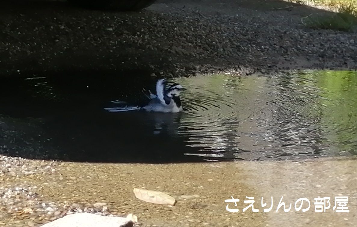 散歩してたら小鳥が水たまりで水浴びしていた(名前がわからない(>_<))