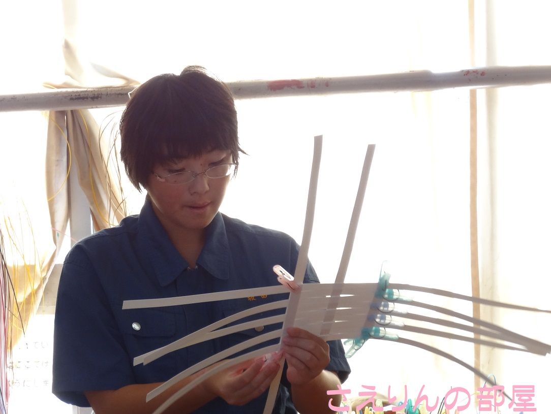 さえりんは地元中学の特別支援学級でクラフトテープのカゴ作りに出会いました。