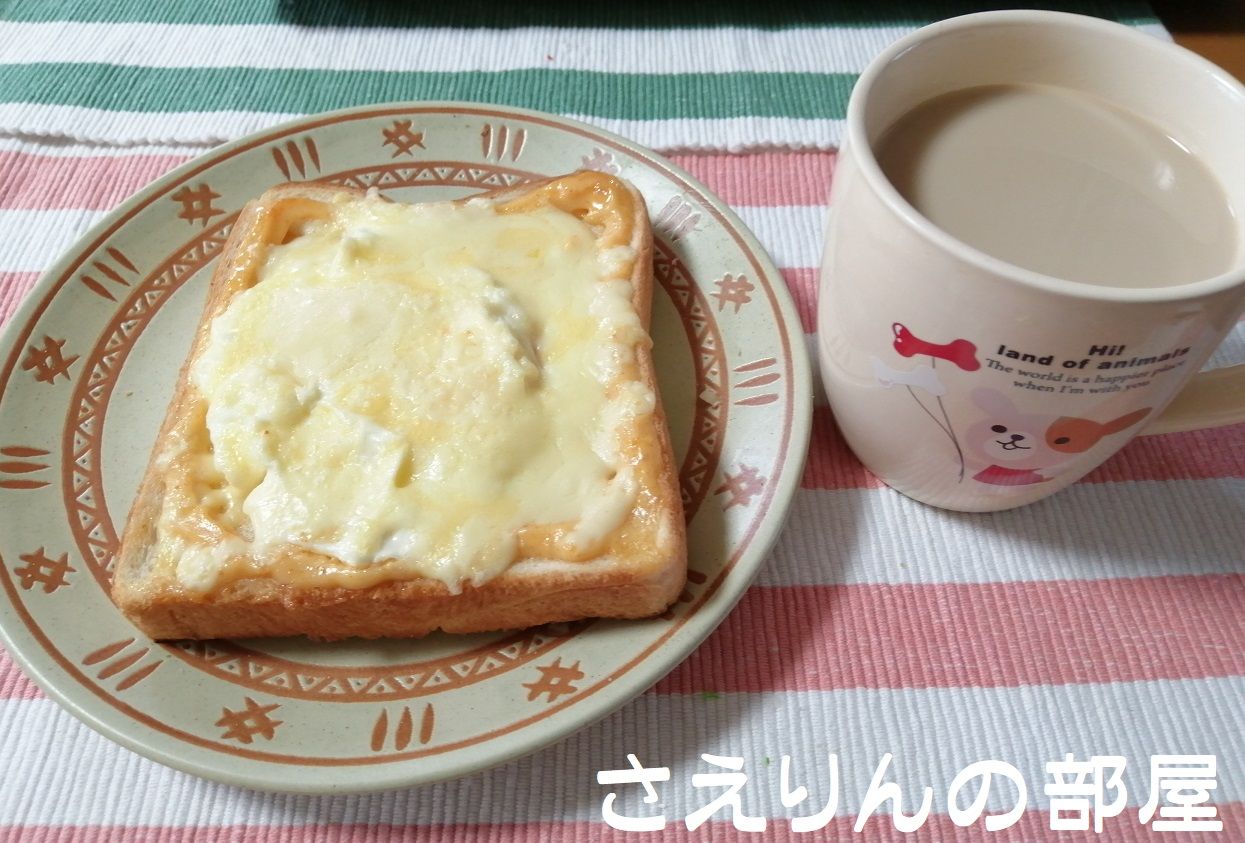 昨日のお昼ごはん、かずまる@さんの温玉チーズトーストのマネして