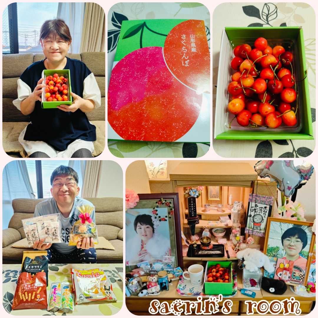 福島県の被害者ご遺族Sさんが「山形県産のさくらんぼ」を送って下さったんです。 毎年贈ってくださってさえりんが大好きだったさくらんぼは早速仏壇に供えました。 ​Sさんいつも本当にありがとうございます(^-^)​