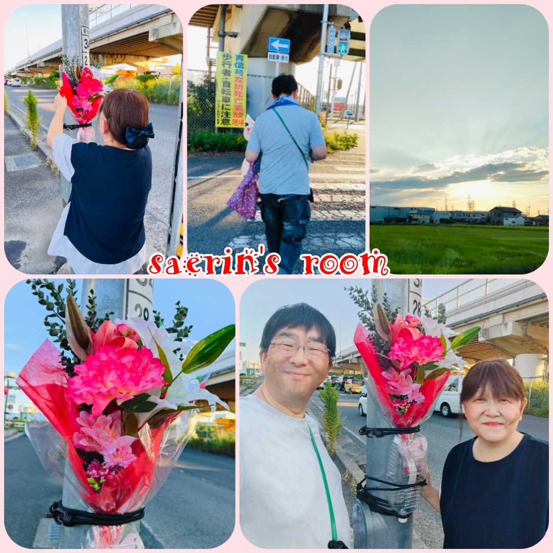 ​ その後はダイソーで買い物をして さえりんの現場の花を取り換えに行きました。 今月の4日の前に供えた月命日の花がもうすっかり枯れていたので、造花の花を供えました。本当ならいつも生花が良いのですがこの時期はすぐに枯れてしまうので、月命日だけは生花で途中は造花で仕方がないと思っています。それでもいつも現場には綺麗にお花を飾っていたいんです。交通事故防止のの注意喚起として。​