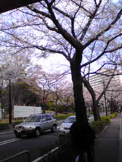 今日は薄曇り買い物に行った時に通る道路・・・アーチのように桜が両サイドから咲いていてなんだか桜のトンネルみたい