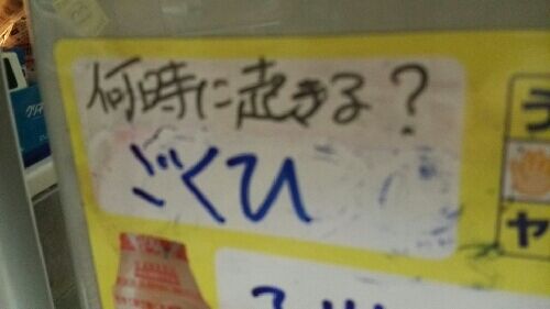 今朝、起きたら 極秘だつて 我が家は 今日はみんな お仕事お休みだった… 連絡 何時に起きる? いつもは 秘密 といたずら書きしてある! 今日は なんとバージョンアップ! 笑っちゃいました(^o^)