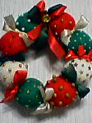 極細の毛糸 赤 白 緑で平織りをして 筒状に