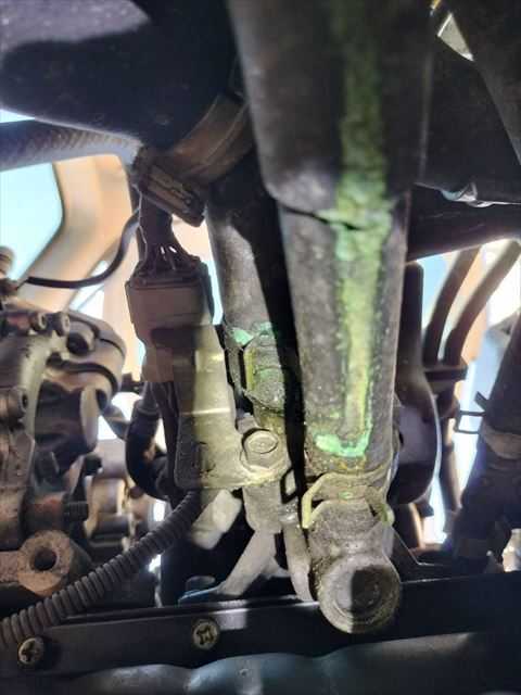 先日の事、我が愛車サンバーのエンジンから白煙が上がった。まるで映画のワンシーンのようなどこかで見た光景だった。(;´・ω・)原因は冷却パイプの破裂。まぁ、30万キロ超えの車体なんでいろんなところのゴムパーツが朽ちてきているのでしょうがないと言えばしょうがない。とにかく直す事にする。まずは破裂した場所を見つけないといけないのだがエンジンルームを見てもわからないので車体を上げて下から見てみた。なーんかクーラントが漏れた跡が・・・・・・ここか?実はここはちょうどサーモスタットに繋がっている配管で以前からちょっとずつクーラントが漏れていたのだ。そこで冷却パイプを交換しようとすでに部品も買ってあるのだ。ならば話は早い。さっそく冷却パイプを交換する。もちろんサーモスタットも交換した。・・・・・・・・・・・・・・・・・・・これで一段落かと思ってクーラントを入れてみたらなんかじゃばじゃば音がする。クーラントがにじんでるとか漏れてるとかじゃなくてじゃばじゃば流れてるのだ。なんじゃこりゃ(@_@)念入りに調べてみたらどうやらエンジンのインテークマニホールドの下あたりから漏れている。じゃーないのでインテークマニホールドを外してみたらビンゴ。見事に配管が裂けていました。こんなに裂けるんだ。ある意味びっくり。(◎_◎;)さっそく部品を注文する事にする。エンジンから出ている冷却パイプは10本。おそらく同じように朽ちているので全て交換するのが望ましい。昔はディーラーに車検証を持って行ってパーツを注文してたのだが今ではネットで部品を調べて注文できる。便利な世の中になったもんだ。が・・・・・・・・・・・・・・・・・・・車が古いせいもあってパーツが一度に揃わなかった。本来は一気にすべての冷却パイプを交換したいのだがお仕事の兼ね合いもあってとりあえず破裂した箇所のみを修理する。他の箇所は後日のお楽しみですな。あとは、クーラントを入れてエア抜きで終了。とか、書くと簡単に終わったように感じるかもしれないが実はエア抜きが一番時間がかかっている。サンバーのエア抜きってめっちゃ大変なのだ。なんかこのサンバー年中修理しているような気がするが気のせいか? (笑)