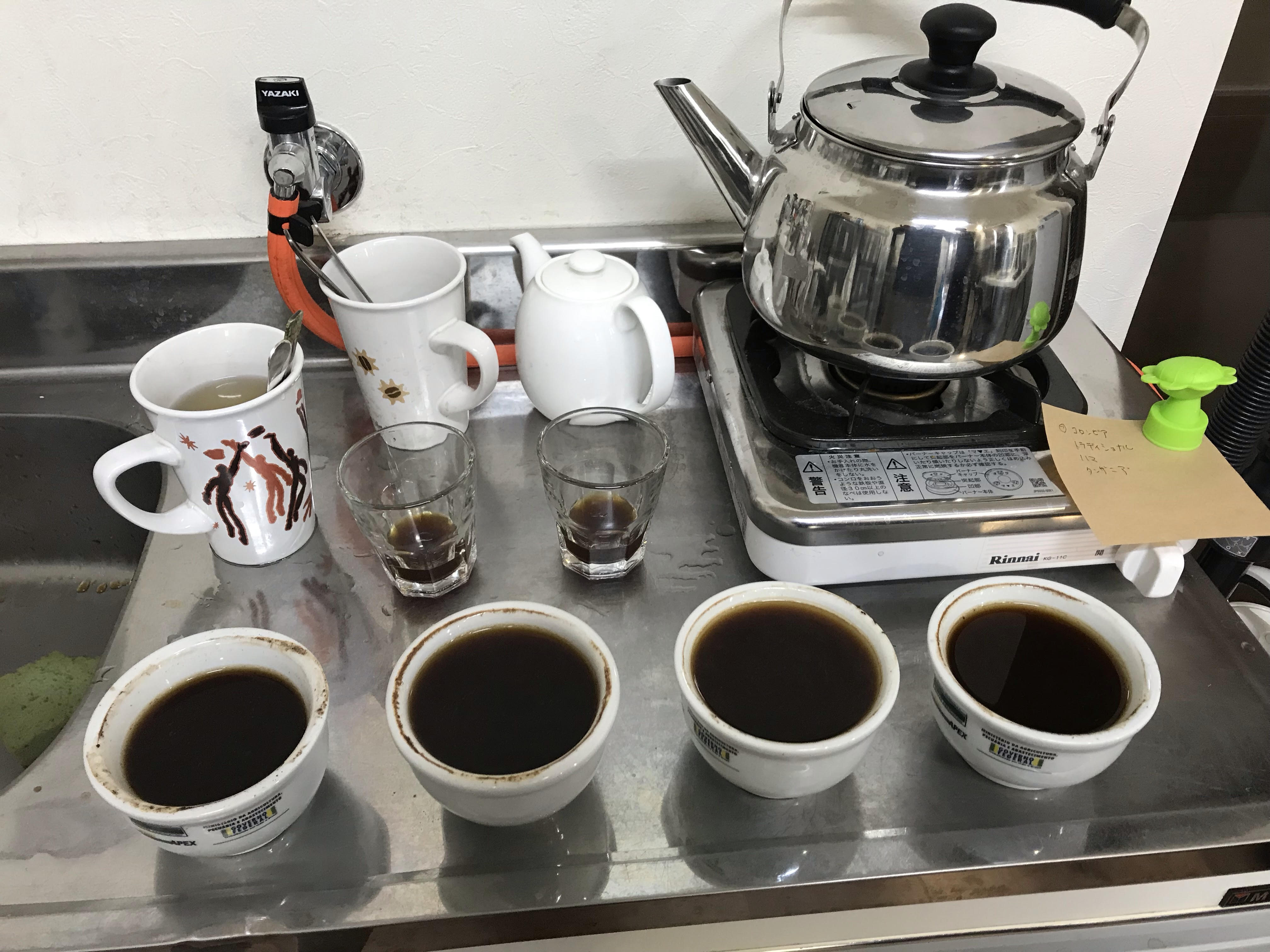 プロのつぶやき987「第1回ペーパードリップレッスン・2」全豪オープン大阪なおみ優勝・・・大きな怪我から復活したあの強いクビトバのプレッシャーに対応して押し切ったのですから凄かった素晴らしい!! フィジカルもメンタルも鍛えられていますねー・・・エラー減っているし、パワーはすごいし。錦織も押されても押されても押し返し・・・最後はジョコビッチ戦でリタイアになりましたが・・・やはり選手生命に関わる大きな故障から1年で・・・フィジカルメンタル鍛え・・・サービス、フォアボレー、スマッシュ、ディフェンスが上達・・・フォアも戻り、プレイの幅がさらに広がり・・・あとはGSやMSのビッグタイトルの決勝のコンデションが良ければ!!・・・サービスもリターンももっと磨き上げ成熟させるでしょう・・・何度でもチャレンジですね。そんなこんなで・・・1/13・20と第1回ペーパードリップレッスン・・・2回目行いました・・・さかもとこーひーの豆を淹れるポイントです。(他店のコーヒーは、そのお店のお勧めの淹れ方が合っていると思います。)同じこーひーを(1/13はエスプレッソNo5、1/20はグアテマラ・エルインヘルト・トラディショナル)・・・まず、カッピングボールでカッピングの淹れ方して、ふた口三口味わって頂き・・・次は、ドリップポットにお湯を移して、やや粗挽きの粉で、丁寧に蒸らしてのペーパードリップ・・・さらに、沸騰したお湯をティファールから直接蒸らし無し・細挽きの粉でペーパードリップ。最後は、カフェプレスで淹れて・・・それぞれの違いを味わって頂き・・・最後は近所で親しくしているメグンさんのオレンジのチーズケーキとチョコレートケーキを楽しみながら、あーだこーだと質問や感想を言ったり聞いたりして・・・こーひー足りなくなったらコーヒーメーカー(ペーパー使わずに金属メッシュのフィルターで淹れています)で淹れたこーひーをお替わりしながら話しが弾みました。みなさん、多分コーヒーカップ4-5杯分くらい召し上がったんじゃないでしょうか。同じ豆でも・・・口当たりや余韻の印象が違うのを体験していただけましたが・・・まず、最初に分かりやすいのは、カップに注いだコーヒーの温度です。丁寧に蒸らしたペーパードリップのコーヒーは冷めています・・・まぁ、だから昔からカップやサーバーを温めたり、コーヒーも温めなおしたりして、ぬるくならないよう注意したのでしょう。ドリップポットのお湯が(まぁ、測り方でブレますが)・・・85-90℃くらい・・・蒸らしの中やドリップ中の粉の中が・・・65-70℃くらいでした。沸騰したお湯をティファールから直接蒸らしなしのドリップは・・・まずお湯は95℃以上・・・ドリップ中の粉の中が・・・90-95℃くらい。カッピングやカフェプレスは沸騰したお湯を注ぎ、4分置きますので・・・温度の違い・・・4分お湯に浸かっているのとドリップでお湯が通り抜ける違い・・・ペーパーで漉すか、金属メッシュで漉すか、カッピングのように上澄みをテイスティングするか・・・それらの違いですね。で、さかもとこーひーとして伝えたかったのは・・・カッピングの段階で完成度を高めるので・・・淹れるのもカッピングに近づけたいわけです。そうすれば・・・お客さんも難しい淹れ方しないで、気軽に美味しく楽しめると思っているんです。(豆の量が少なく経済的なのもありますし・・・。)ドリップで湯温下げたり、上手に蒸らしたり・・・粗挽きにしたり・・・抽出が悪くなって、ネガティブな味わいが出ずらくなります・・・と、言うことは豆にネガティブな味があるってことで・・・素材か焙煎に問題があると・・・勿論、そういったコーヒーはカッピングでその味が確認されるでしょう。まぁ、喫茶店・カフェだと抽出で工夫して美味しいコーヒーをお客さんに出せますが・・・さかもとこーひーはカフェやりませんので、家庭で美味しいと思って頂かないと商売になりません・・・そんなことから今のように素晴らしい素材に出会った20年くらい前から・・・素材のクオリティと焙煎のスキルアップにフォーカスしてきたんです。で、実際飲んでの感想は?・・・最初の蒸らしたペーパードリップ・・・みなさん「美味しい!(笑)」・・・そして、蒸らし無しのペーパードリップは・・・「熱い!」「さっきと全然違う」私坂本としては・・・蒸らしたペーパードリップは・・・思ったより飲める・・・しかし、抽出不足でバランス取れていないし、まろやかなコクが無いし・・・後味に重さがあって、爽やかな魅力が欠けている・・・冷めたらそれが分かりやすくなりますと、ひと口ふた口残して置いてもらって、あとで比べて頂きました。実際・・・この重さをコクだと思っているのがほとんだと思います・・・プロでも。そうそう・・・高校の同級生が早期退職してカフェを始めて・・・さかもとこーひーを使ってくれて・・・しばらくすると電話で「以前より美味