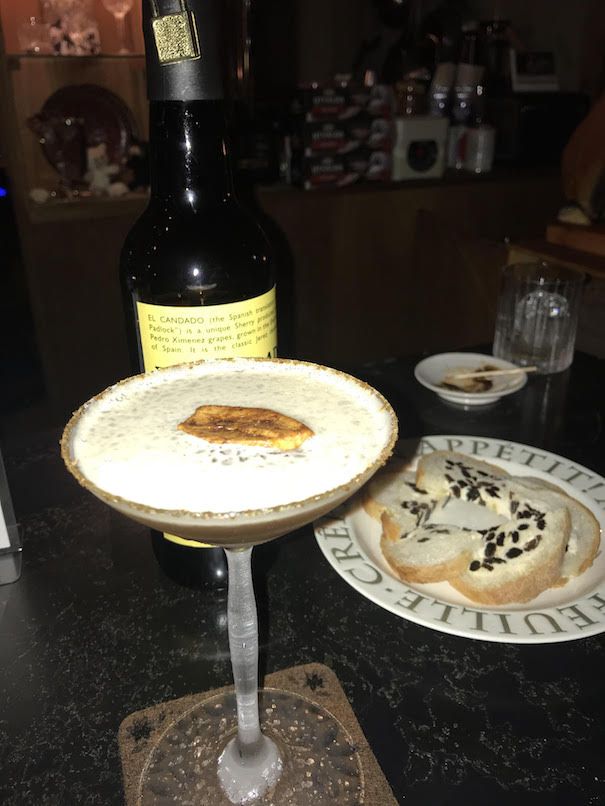 で、前回が冬だったので今回は夏向けということです・・・達郎をBGMと、気を使っていただいてまずは珍しいジンを1杯・・・そして「大人のブラックルシアン」を・・・ブラックルシアンはカルーアというコーヒーリキュールにウオッカといったカクテルですが・・・エクルを使うととコーヒーの香りがポイントになると・・・カルーアのスタンダードなブラックルシアンはコーヒーの香りに物足りなさを感じていたそうです。エクルだと味わいがきれいなのでカクテルの邪魔しないし、香りが魅力になると・・・。