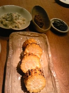 青山の『大かまど飯・寅福』に来ました。 とうもろこしの炭火焼!旨いです~(^^)香ばしいくあま~~い、とうもろこし。ビールでキューっといきますよ!そして天野店長と清水コーイチローです(^O^)/天野店長は酒も料理のオススメも聞いて安心な方です。ありがたいですよね!お近くの方はぜひ行ってみてください!(^O^)