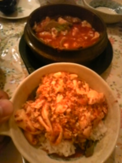 韓国料理のお店に行ってきました辛いし旨いしで大満足。写真は豆腐チゲとご飯にのせたものですが(見た目はイマイチですがウマイ)。いままでのイメージを良い意味覆されまして私が知らなかっただけといえば本当にそうなんですが、味のコクが自然なんです。決して旨みが濃すぎないけどしっかりと旨みがある。 普段化学調味料に馴染んでしまっているのか、とても自然で美味しかったですここのお母さん、あみエビの塩辛なども自分で仕込んでいて、そういった醗酵調味料が味の基本になってるそうです 酒はマッコリをタップリいただきました純米酒の活性にごり酒とはゼンゼン違う味わいで、本当に世界のお酒は面白いですね!この次は韓国料理に純米ニゴリの組み合わせを試したいと思います