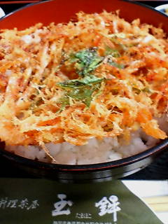 写真はお昼に食べた桜海老のかき揚げ丼。