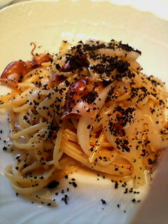 黒いものは イカスミとガーリックで炒めたパン粉 です香りよし!また菜の花のアーリオオーリオが食べたくなってきました。ちょいほろ苦いのが・・・・