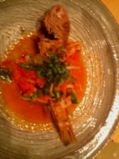 甘鯛の空揚げ友部産トマトと山菜ソース