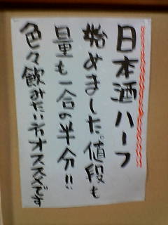 グラス、もしくは徳利の『ハーフ』(半分の量)