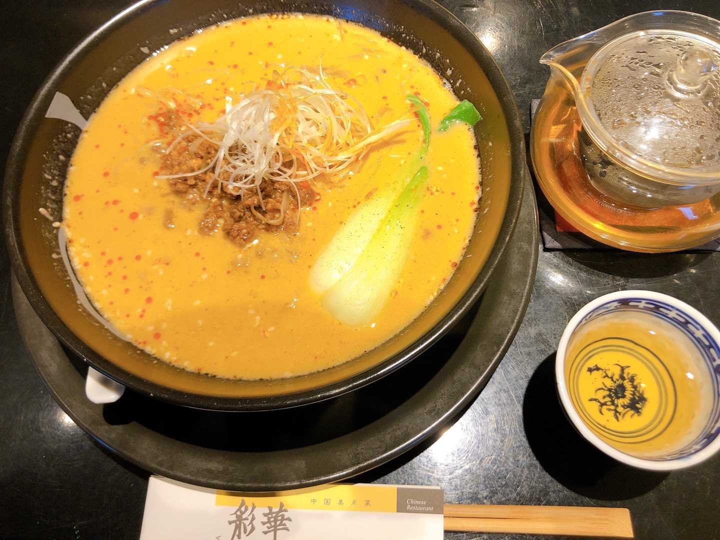 一番町を徘徊していたら寒くて熱々の麺類を食べたくなったので、ホテルのレストランを想わせる雰囲気のこちらで坦々麺を選んだのは大正解! ゴマの香りが効いた濃いめのピリ辛スープと、太麺が良く合って大変大変美味しゅうございます。それに水ではなく、温かいジャスミン茶なのも嬉しいですね〜。 中国美点菜 彩華 仙台市青葉区国分町