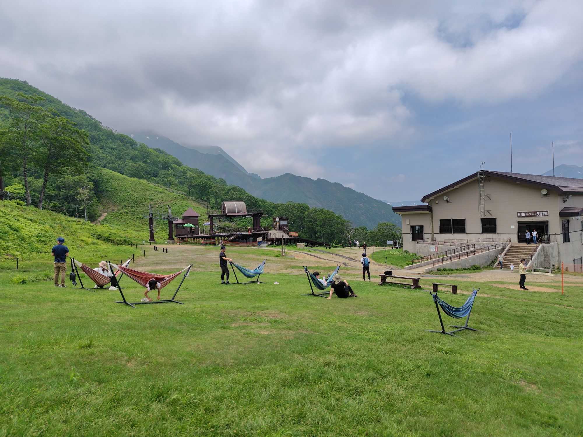 ​駅をでると気持ちのいい解放感。最近はどこもテラスやハンモックなどを設置するところが増えました。ここのハンモックも雲を見上げて気持ちがよかったです。​