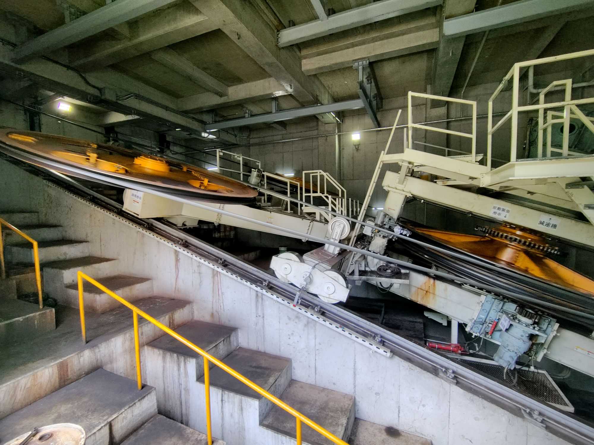 ​山麓駅に到着して、戻るバスの時間まで1時間以上あったので、付近を散策。機械室のシャッターが開いていたので見学。​