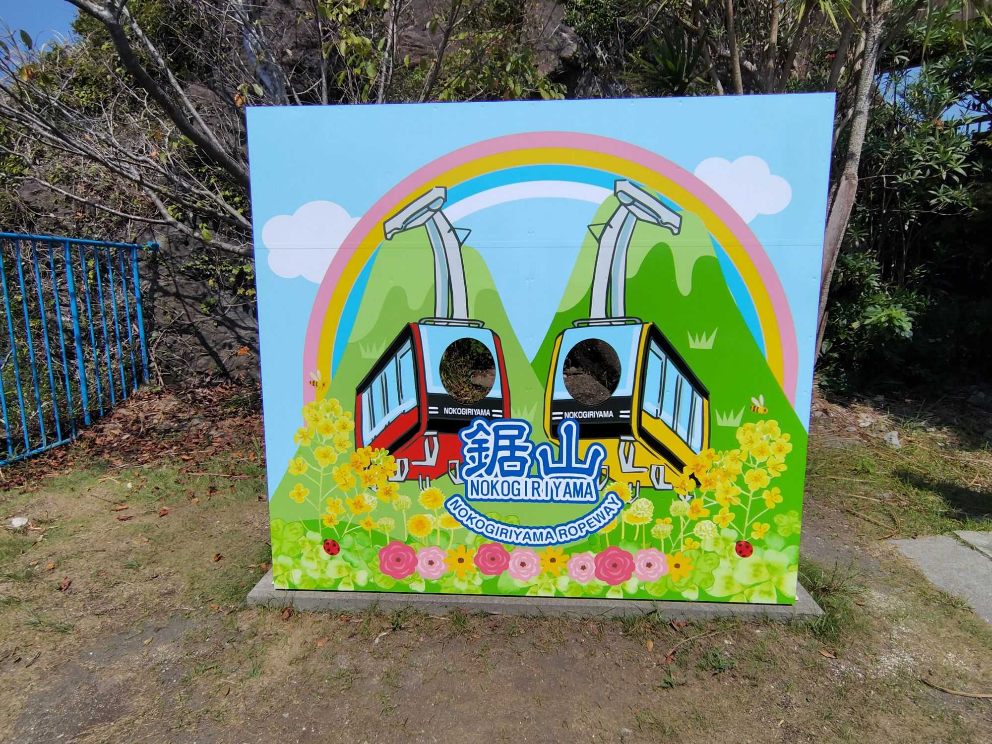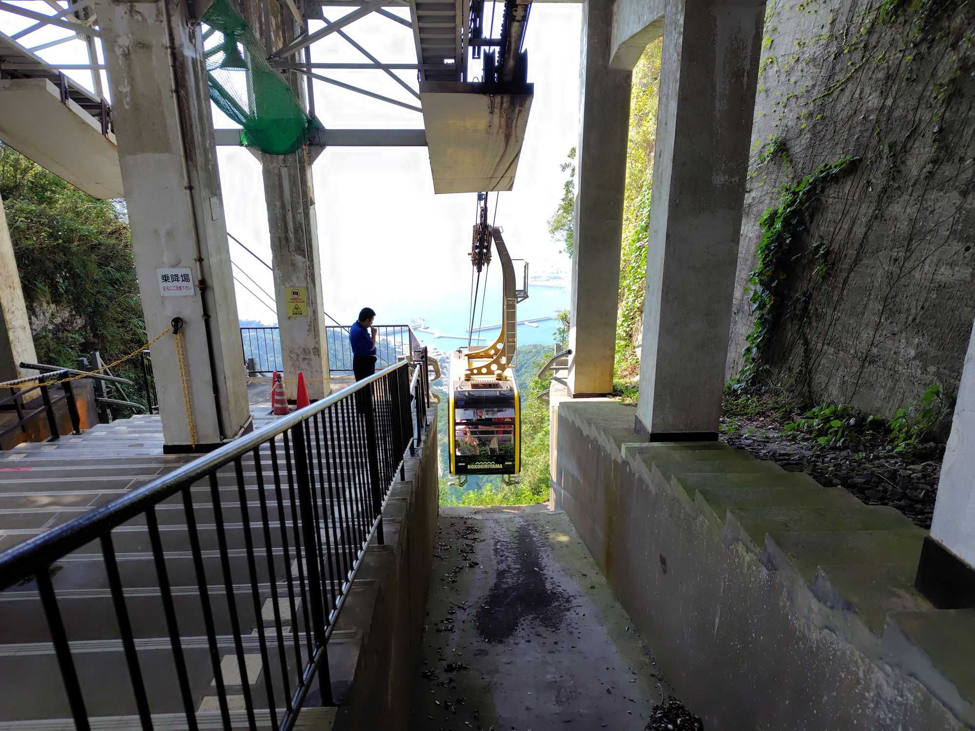 12時50分臨時便で2号車に乗車。鋸山ロープウェーの従業員さんたちはみんなフレンドリーで明るい。お客は我々3人だけだったので車掌さんにウエイトは一個何キロかとか搬器の施錠はどうなってるかとかマニアックな会話を楽しんでました。