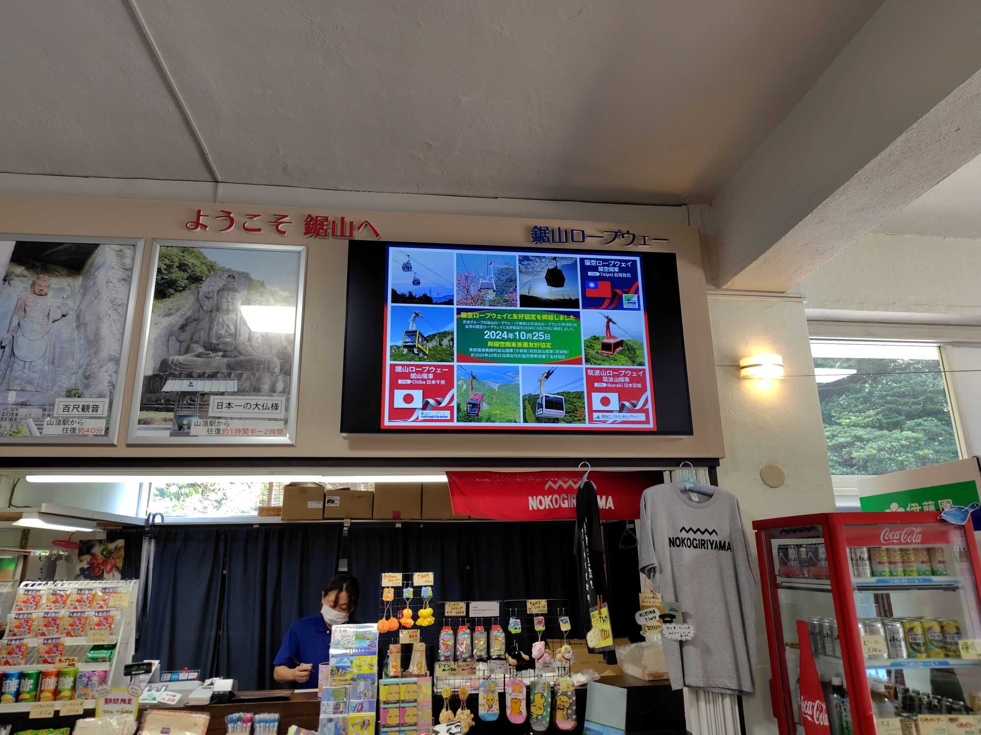 山麓駅に到着してから、お二人はロープウェイグッツを色々と購入されていました。売店の上にモニターが付きましたね。昨年、京成グループの鋸山ロープウェーと茨城の筑波山ロープウェイは台湾の猫空ロープウェイと友好協定を結んだようです。