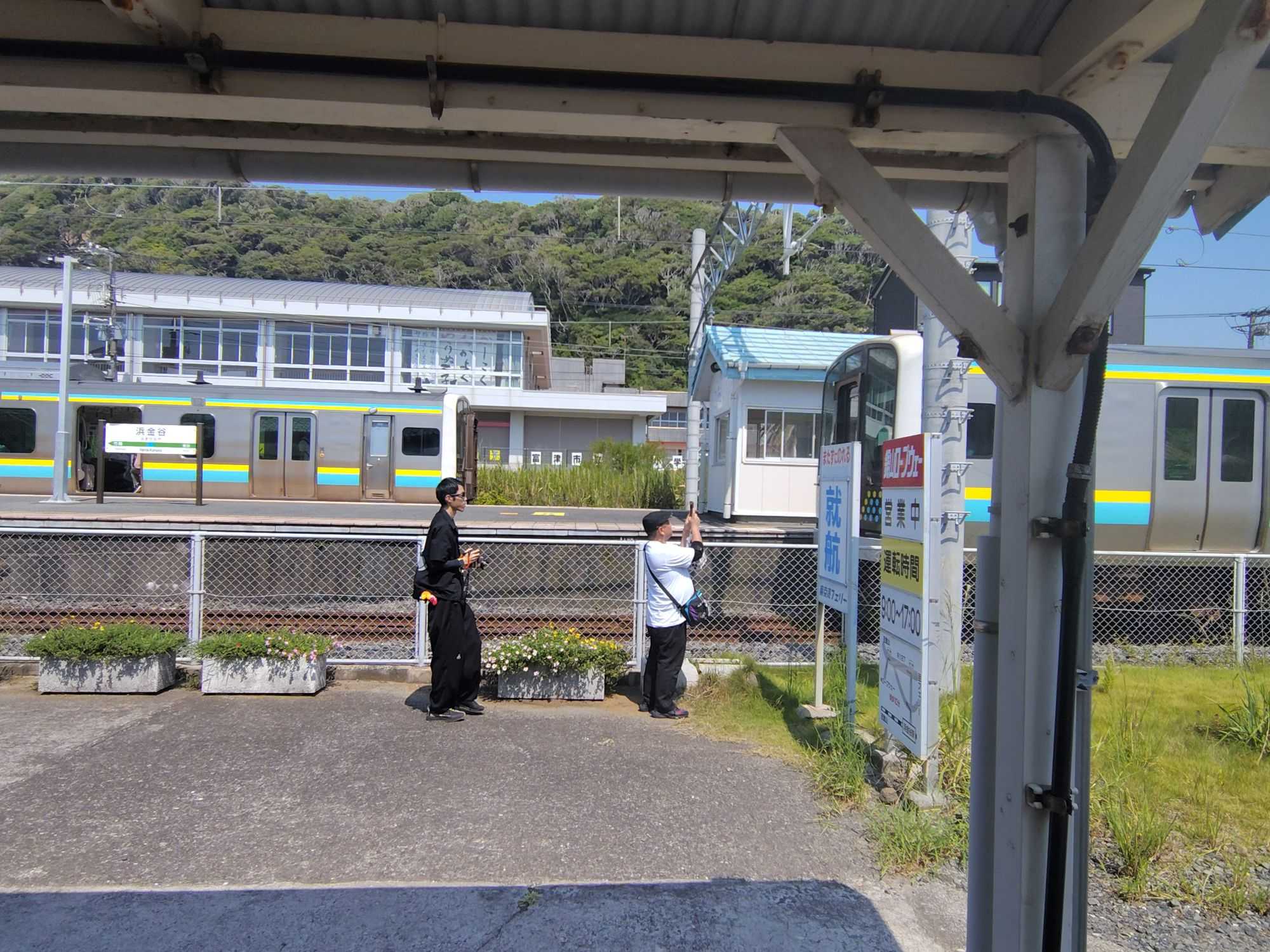 東京駅で合流して浜金谷に13時6分到着。二人とも鉄道も好きらしく、なかなか改札から出てこない。