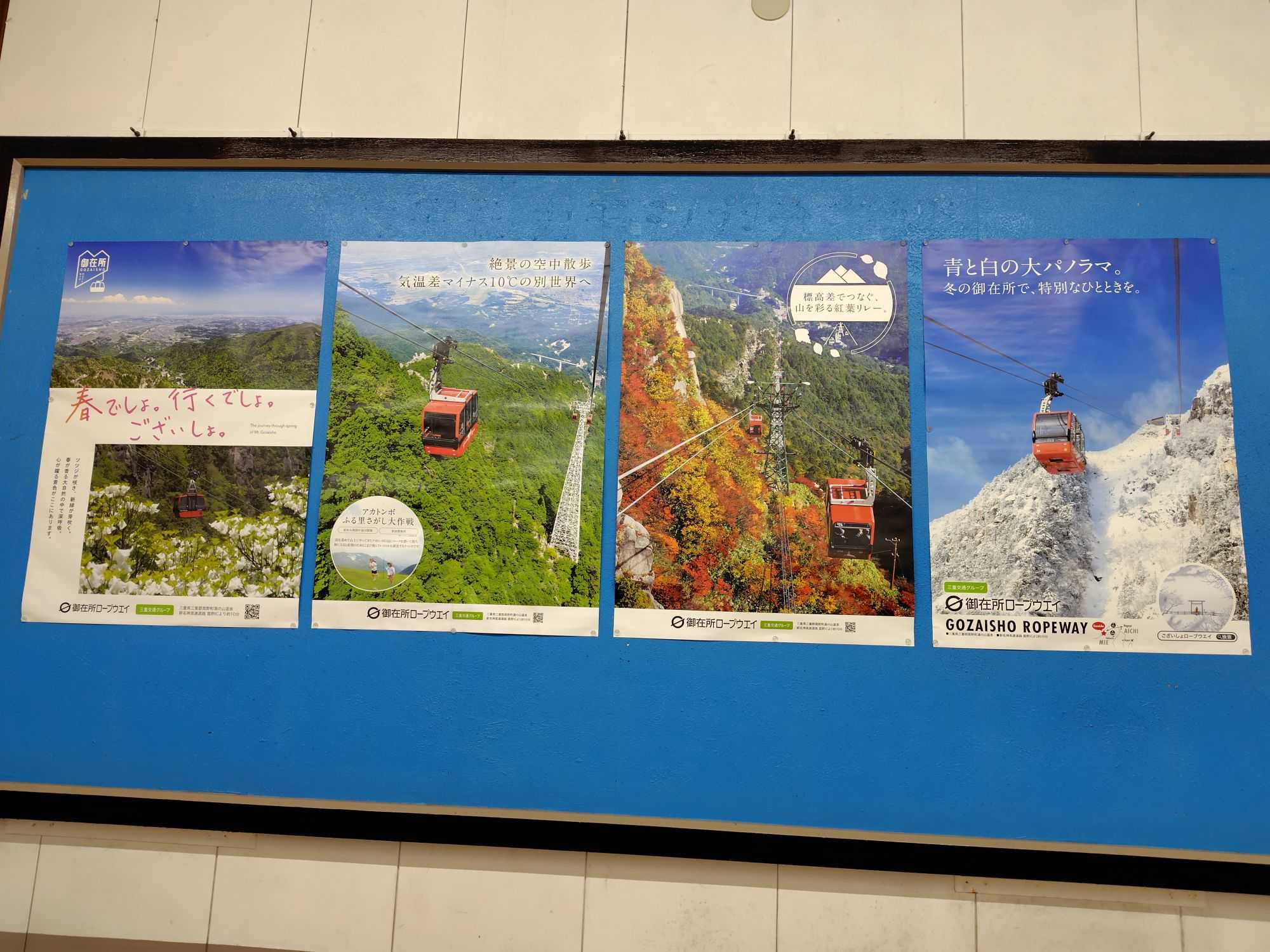 下り乗り場へ行く通路に貼ってあるポスター。ロープウエイの搬器が大きく写っていてとてもいいんです。これ欲しいなあ~。