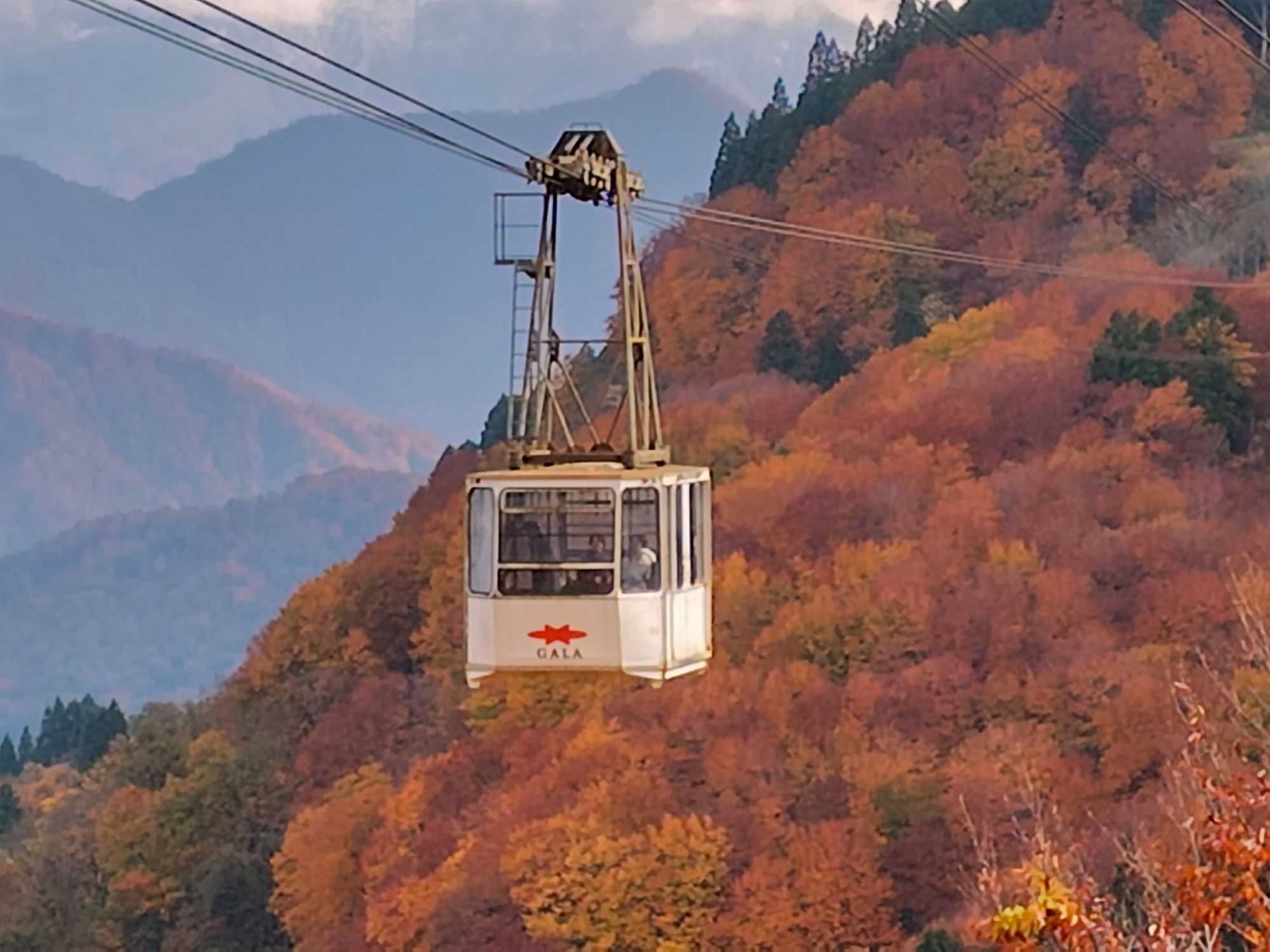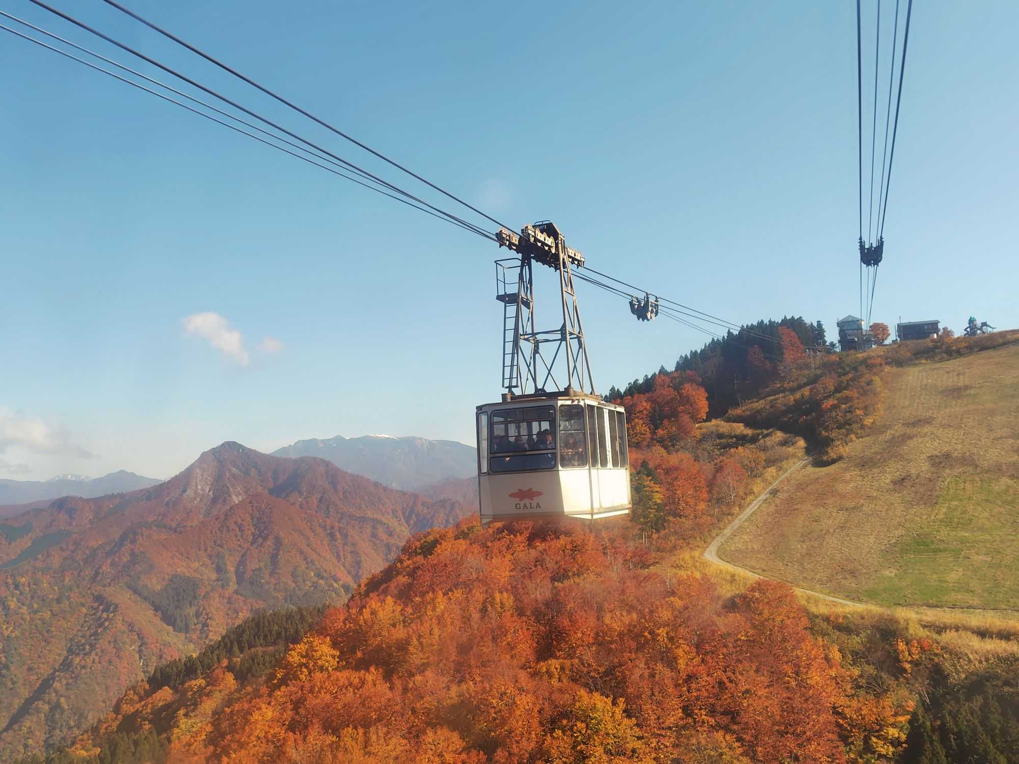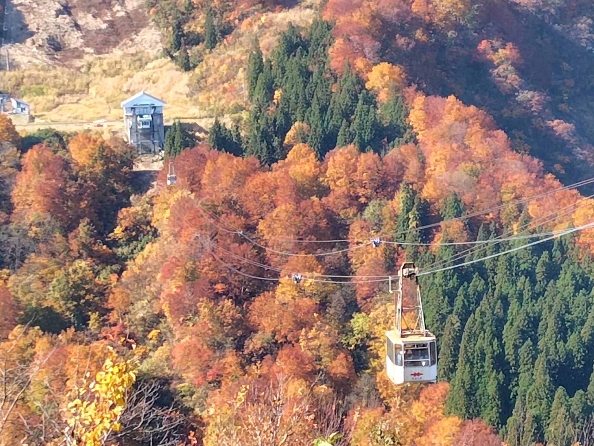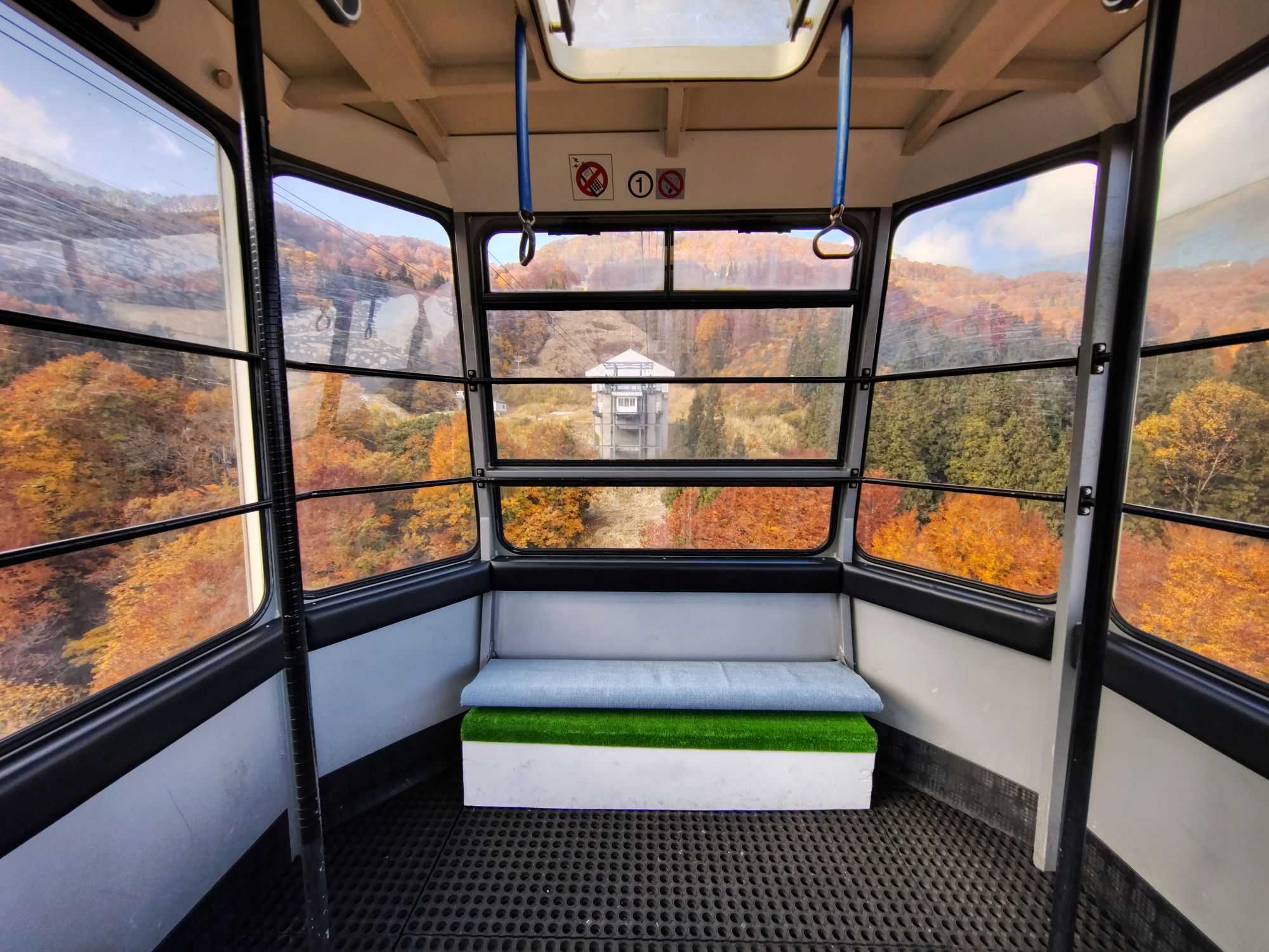 この日は楽しく3往復しました。かなり長い事このロープウェイに乗りたいと思っていましたが、スキーができない自分がわざわざスキーシーズンに乗りに来るのはちょっとハードルが高かったので、この紅葉運行はとても嬉しかったです。