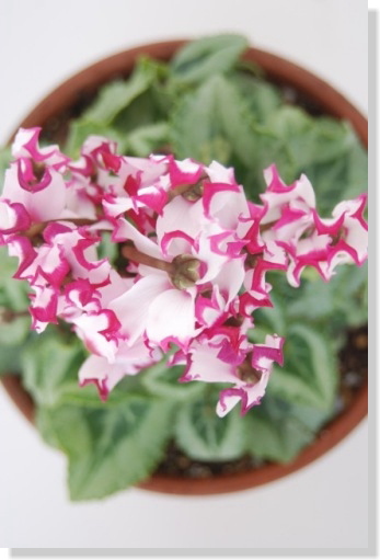 ゴールデンウィークにダンナさんと息子が高速1000円でやって来た。・・で、夏物など必要なものを取りに、帰りの車に便乗した。久々の我が家のベランダ・・・^^息子が携帯で“咲いたよ~”と送ってくれた一番花はもっと花びらがクルンとダンスしてたけど・・でも見れて良かった! それから、買った時ピンクのフリルを纏った“ガーデンシクラメン”こんな感じ・・冬を越して・・3月小さな花芽が沢山控え・・5月・・もう一度開花の時期を迎えて、わんさか咲いた。でも、フリルは何処へ置いてきたのやら・・^^フリルのピンクは、花全体に浸透して・・薄っすら桃色に変身です