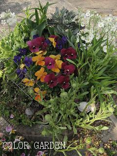この寄せ植えのチューリップも咲いてきましたこんな感じになりましたチューリップが咲くと華やかになりますよね~白のマラコイデスの花はすっかり終わり後方のユーリオプスデージーとなでしこはまだ蕾で(やっとの蕾。。。)チューリップの陰に隠れてしまってます変り咲き Finola2007年新作 Melrose一番綺麗な時を撮れませんでした。。。種蒔きネモフィラやビオラなどの花壇今日は雨でみんな倒れてますネモフィラは雨に当たると可哀想な姿になりますよね~2007年新作 Aquilla黄色に赤い淵が特徴2007年新作 Cool Crystalフリンジ もうすぐチューリップの季節が終わってしまうのは残念ですが次にはバラやクレマチスの季節になりますDesigned by Tomoco*