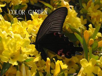 カロライナジャスミンの満開映像を先日紹介しましたがその香りに誘われて、蝶や蜂が来るわ来るわ~強烈な香りが虫たちを呼び寄せているのでしょうか蝶が遊びにくるバタフライガーデンは濃いピンクが一番いいと聞いてはいたのですがーカロライナジャスミンにはしきりにお客様が来ています私は蝶の写真なんて撮ったの初めてで撮ろうと思っても間に合わない事が多いの~(笑)この黒い蝶は毎年姿を見る蝶で、近づくといつも逃げられてて。。。でも今日はこのカロライナジャスミン君の密を吸おうとしている蝶は何度も何度もやって来て、撮る事が出来ました名前など知りたい、最近毎日みるこの蝶々ですかなり大きい蝶で、最初見た時はこうもりだと思ったのでしたチューリップは今満開です♪緑一色だったモッコウバラの蕾が膨らみ始めました~ Designed by Tomoco*