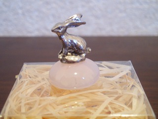 うさぽん1さんからステキなプレゼントを頂きました(^-^*)ノアメジストの上にうさぎが乗った置物です。と~っても可愛いです(=^-^=)vありがとうございました~♪日本マフマフ党名簿はコチラからです。引き続き「日本マフマフ党」の党員を募集いたします。・党員名簿用の写真・お名前・誕生日・女の子or男の子・熱意を一言 是非とも!と思われるウサギさんはコチラの画像掲示板にお願いします。 「一日一ポチ。」お願いします(*^_^*)(=^-^=)