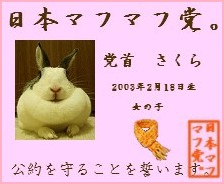 本日より「日本マフマフ党」の党員を募集いたします。是非とも!と思われるウサギさんはコチラの画像掲示板に「党員名簿用の写真」、「誕生日」、「熱意を一言」お願いします。<応募規約>日本マフマフ党が掲げるマニフェストを全力で実現するという熱意のあるウサギであること。(男の子も大歓迎!!)たくさんの党員をお待ちしております(=^-^=)ノ日本マフマフ党名簿はコチラからです。 「一日一ポチ。」お願いします(*^_^*)(=^-^=)