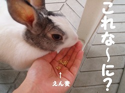 月うさぎ817さんから頂いた、えん麦に初挑戦です。くんくんにおいを嗅いで。。。一粒パクリっ!モグモグ(=^-^=)えん麦がお気に入りに仲間入りしました~。日本マフマフ党名簿はコチラからです。引き続き「日本マフマフ党」の党員を募集いたします。・党員名簿用の写真・お名前・誕生日・女の子or男の子・熱意を一言 是非とも!と思われるウサギさんはコチラの画像掲示板にお願いします。 「一日一ポチ。」お願いします(*^_^*)(=^-^=)