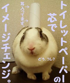 まずはご報告。悩んだ末、結局パーマはかけませんでした。これから数ヶ月、相変わらずの直毛でいきます(*^0^*)今日はさくらもイメチェンしてみま~す v(=^-^=)vトイレットペーパーの芯です。いつも転がしたり、においを嗅いだり。よく遊んでいますが、耳を入れてみると。。。大人しくなりました… (=^-^=)??なぜ??トイレットペーパーの芯って不思議。 画像掲示板はコチラ。 ← 「一日一ポチ。」お願いします(*^_^*)(=^-^=) 日本マフマフ党のマニフェストは以下の通りである。。。●マフマフ(又は毛並み)を見るだけで相手を幸せにする!●たくさんのうさぎ好きさんを増やすために貢献する!●換毛期のブラッシングは大切にする!日本マフマフ党名簿はコチラからです。現在36ウサちゃんが参加中です(=^-^=)ノ☆「日本マフマフ党」は引き続き党員を募集中です(男の子も大歓迎)!!・党員名簿用の写真・お名前・誕生日・女の子or男の子・熱意を一言 是非とも!と思われるウサギさんはコチラの画像掲示板にお願いします。