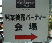 今日は、お友達が当選してくれたレセプションパーティに行ってきました。たくさんのお花のプレゼントが届いてましたが、こちらは【東北じゃらん】さん。そしてこちらは楽天の島田社長からのプレゼント、2段のスタンドになってました。豪華でしたよ~~さて、そんなお祝いの花がたくさん贈られた幸運なお店は・・・三井ガーデンホテル仙台でした。明日オープンなので、前日、内覧会とレセプションパーティを開催していただきました。会場は、7Fレストラン『BAROLO』六本木・東京ミッドタウンなど首都圏を中心にレストランを展開する、株式会社スティルフーズが東北初進出!!仙台ならではの新鮮な食材を使用し、本格的なイタリア料理とあたたかいサービスをお届けいたします。 なんだそうですけどね、今日はモデルや在仙のマスコミやお得意様やコンパニオンと思われるきれいなお姉さん、いわゆる業界人がたくさん来ていてなんとなく場違いな気がしてきた一般ピープルな私たちでした。(プレゼントに当選した招待客は20組くらいのようです)でも、招待していただいたのでしっかりと食べて飲んできましたがこちらはアイデアグッズ。お皿に装着して、そこにグラスを入れておける便利物。しかし、こういう便利なものがあるにもかかわらず、お店の広さのわりには招待客が多すぎて、立って食べることになり、腰が疲れてきました。招待客が、最初は乾杯の音頭はあのDr.コパの夢をかなえ富を築く2009年金運風水のコパさんでした。こちらのお店はコパさんから見ても、風水でもいい感じのお店らしいので、たまには食事で開運しに行かねば♪そしてミラクル宇多田さんのショーもあり。食べ物は、たくさん用意されていたけど、狭いところで並んで取り分けるのが面倒でちょっと残念でした。1枚だけ写真は撮ってきたけれど。抽選券もいただいたので、抽選会まで残っていたかったけど、疲れたので帰ることにしました。あと40分の我慢でしたが、根性なしの私たちでした。でも、賞品、なんだったのかな?宿泊券とか??あと、ゲストで楽天の選手も来るという噂もあったんだけど、誰だったのかな?でも、お土産にいただいたDMの中に、ディナーやランチに使えるチケットが入っていたのでラッキーでした。今度ゆっくり来たいと思います。ご馳走様でした。