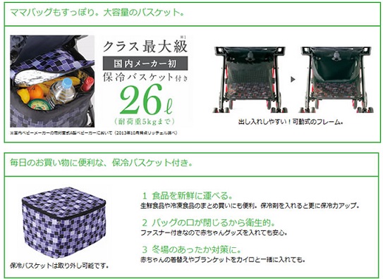 わが家の2台目ベビーカー『ノシェルnociel』最近はこちらを使う機会が多いです過去にも書きましたが→★ノシェルnocielリッチェルベビーカー★見た目にも可愛いところがお気に入りの一つ 他にも、気に入ったところは色々あって、シートがワイドなのも良かったわが家のもう一台、コンビのF2plusが軽量コンパクトタイプなので、広さが全然違うものずごく広々~♪ゆったりしてて、居心地良さそう♪この前、おむつ替えの場所が近場になかった時に、止む無くベビーカーの中で替えたことがあったんですが、余裕で出来ましたベビーカー選びで、ここまでのケースは想定しなかったけど子供はどんどん大きくなるし、長く使おうと思ったら、シートの広さもちゃんとチェックした方がいいんだな、とベビーカーを手に入れた後、今さらながらに思いました あと、つい先日、意外なところで便利だなと思ったのが、雨の日の保冷バッグこの付属の保冷バッグ、大容量なバスケットにピッタリサイズなので、私は常にバスケットに取り付けてます(取り付けボタン付き)取り外した場合も、薄くて折りたたんでも小さいので、ベビーカーとは常に一緒もともとの付属品なので、この「ピッタリサイズ」というのが肝折角の大容量バスケットのスペースを無駄なく使えるのがお気に入りですさらに、雨の日には、荷物を地面からの跳ね返り水からガード最近、雨続きだったので、助かった使った後の掃除も簡単意外なポイントでしたー あと、レッグレストっていう、赤ちゃんの足にあたる部分が7段階調節できるのも良かった子供はまだ4か月で小さいから、レッグレストにはまだ全然足が届かないけど、レッグレストが上に向かっても曲がるので、背もたれをフラットな状態にしたときに、寝ている赤ちゃんをベビーカーの枠で囲んだ状態にできるクーファンに入れてるみたいな感じ?囲われてるので、足元にブランケットやタオルを掛けておいても落ちる心配ナシ♪囲われてるから、子供を見てても安心感ありますちょっとしたことでも、おっ!いいなーと思うことが色々あって、使っててなかなか楽しいベビーカーです暮らしの中に…リッチェルファンサイト参加中株式会社リッチェル 17色おしゃれでかわいいコッフルタオル♫Ifutonworkポンパレモール店 IfutonworkDeNAショッピングモール店 IfutonworkYAHOOショッピングモール店 ビタントニオ ワッフル&ホットサンドベーカー長期モニター参加者4名募集! 【16名様!】吸湿マット「快眠ドライ」モニター募集吸湿マット「快眠ドライ」東洋羽毛工業株式会社 大幅バージョンアップしたzootieムートンブーツ&モカシン全4型モニター募集! ☆~♪マルサンカロリーオフ豆乳モニター24名募集!マルサン坊や☆シール付き