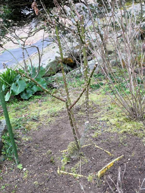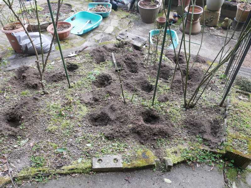 今日は夫も私も疲れた~二人とも朝8時前からピーチヒルに上がって私はいつもの寒肥入れ夫の方はピーチヒルのメンテナンスで鉢置き場の幅を広げるのとひび割れたモルタルの通路の補修でした二人とも朝から始めてお昼も食べずに2時ごろまで作業していて夫はお昼を食べてからも続きをして仕上げてくれました私はピーチヒルの一番上の寒肥入れ現場はここ↓↑ 左側に写ってる柚子の周りの薔薇から始めましたここにはリッチフィールド・エンジェルグラハム・トーマスビサンテネール・ドゥ・ギヨーをそれぞれ誘引しています↓次にクライミングもブッシュも植えてある細長花壇丁寧に寒肥を入れたので5月のお花が楽しみ~次にはその前の短め剪定のブッシュローズ花壇そして↓ 左のクライミングなどに寒肥を入れたら全体の半分が終了そのあとパーゴラに誘引しているポールズ・ヒマラヤンムスクやアルベリック・バルビエなどに入れてそこまで済んだらあと少しなので頑張るんだ自分と言い聞かせ並んでいる背の高いイングリッシュローズの下に這いつくばり次から次へと草取り穴掘り寒肥入れそしてついに~終わりの時が来ましたこの端まで出来たらここは全部終了朝から実に6時間かけて39本の寒肥を入れて今日の目標は達成あとは多肉部屋の奥と家の周りだけなのでいよいよ終わりが見えてきましたまた明日も頑張ろう今日はお天気が良くて玄関から出たらすぐに目に入る寄せ植えたちが本当に綺麗だった~そう言えばこの子も一昨日お迎えしたんです~ラベルが面白いお友達に頂いたシックな色のプリムラは単独植えでも見ごたえがあります新たに作った寄せ植えはラナンキュラスが主役ビオラもちょこんと入れて近くに行くとストックから素敵な香り~今日も読んで下さってありがとう応援して下さいね~