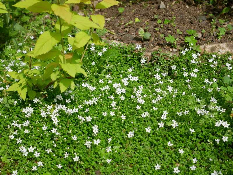グランドカバーの間に生えた草を