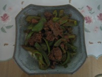 時間がなかったので、パルシステム牛小間切を使ってピーマンと炒めてマーボー茄子風の味付けにしました。うん、パルシステムの牛肉はおいしい。私はあまり牛肉が好きではないのだけれど、パルを利用してからおいしいと思うようになりました。ところで、これに使ったピーマンもパルシステムのもの。とっても大きくてたくさん入っているのでうれしいのですが、なんと!!切ったら中に・・・生きてました、毛虫!?にょっきにょきと歩いてました。気持ち悪、、、と思ったけど、これも除草剤不使用の証かしら!?