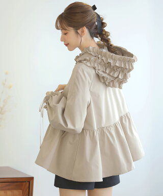 フリルをあしらったフードや長い袖リボンなど、目を惹く遊び心が詰まった個性的なアウター。さっと羽織るだけで大人の女性らしいこなれ感が漂います。抜け感のある大き目のバックフリルで可愛くなりすぎず、カジュアルながら着回しの利くアイテムです。ボリュームたっぷりなシルエットで、バランスのとれたスタイルアップが叶います。フリルフードペプラムパーカーJKT 裾フレア ペプラム フードパーカー パーカー ジャケット アウター レディース 秋 冬【m728】【ブラック:即納&一部予約販売:2024/10/4までに発送】【送料無料】メ込
