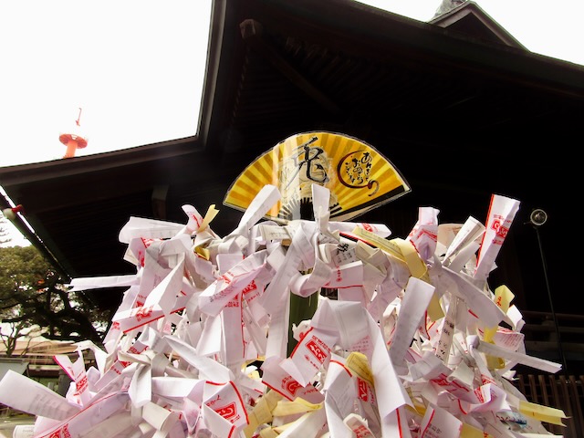 可愛らしい御神籤結び所がズラリと並んでいました。