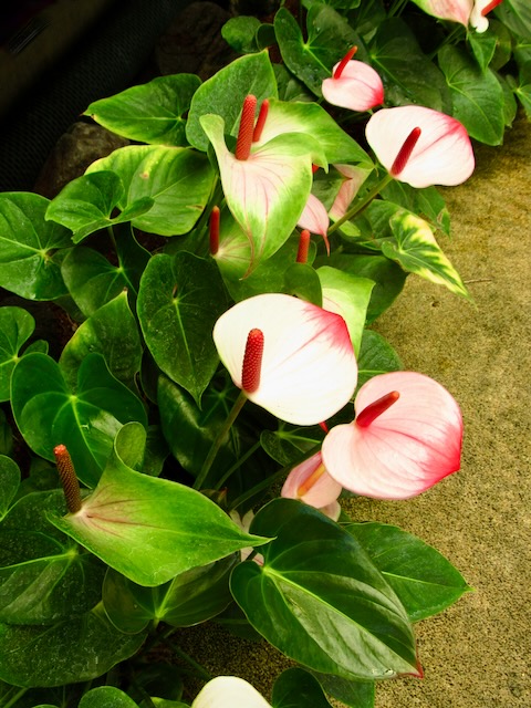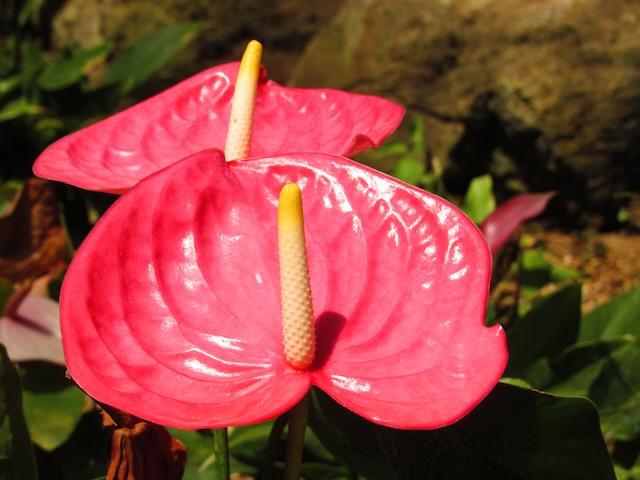 ツヤツヤで真っ赤なアンスリウムの花。