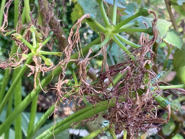 茎は折れ曲がり