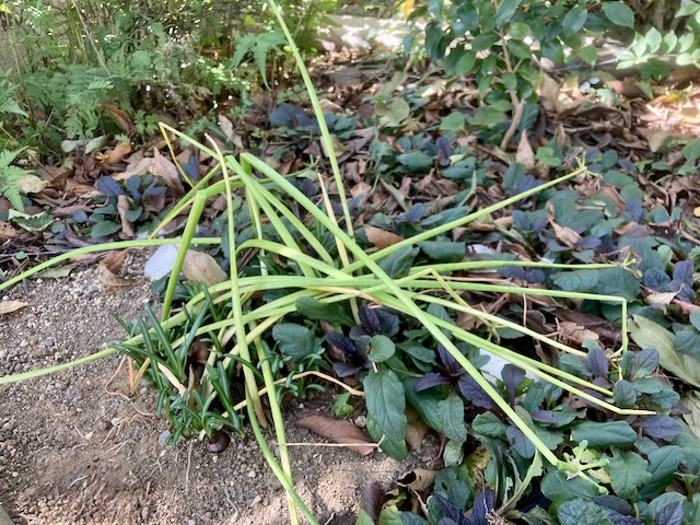 写真の左下に出ている細い葉が