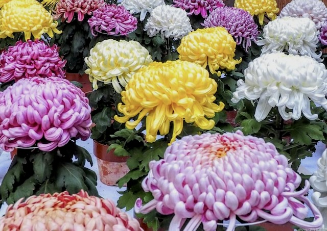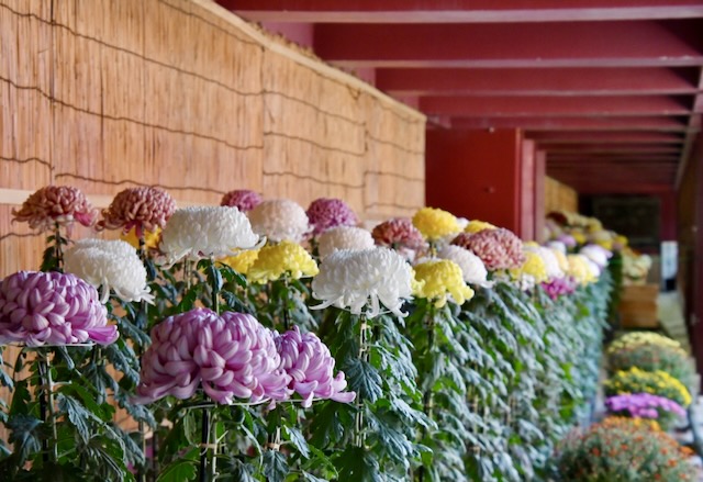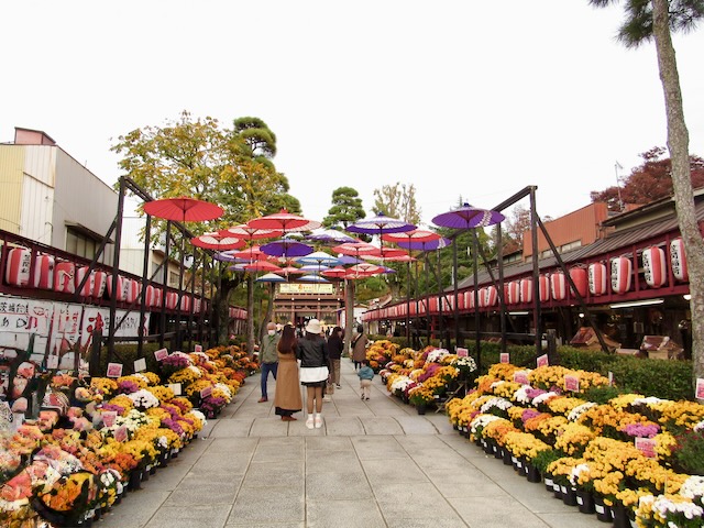 町中が菊の花で飾られています。