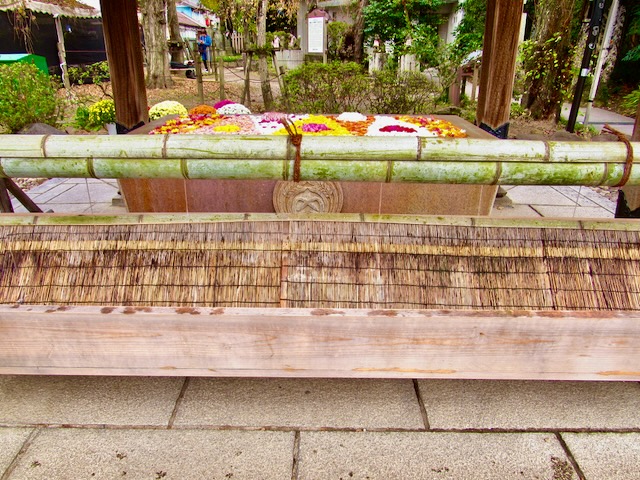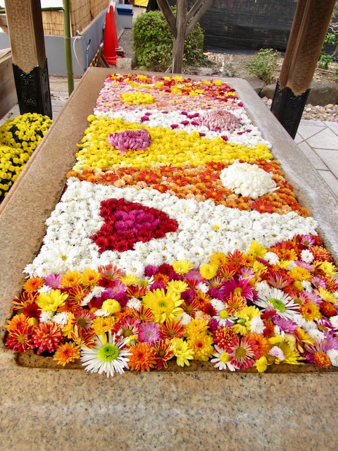 水に浮かべた菊の花があちこちに