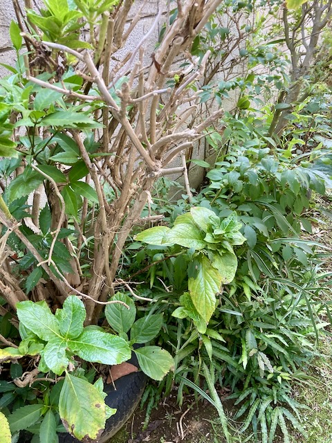 アハハハこんなになってしまった裏庭‥なんとかしなくちゃね〜お空は曇天気温は18度。頑張りましょう裏庭のお掃除です放っておくと始末が悪い。分かっていることです。それでも、紫陽花や紅葉の枝は殆ど、切り落としているのが自分に「偉い」って褒めてしまいます。今日はそんなに頑張らずに出来るところまでやる。やりたくない気持ちが押し寄せて来たらすぐに止めようと思っての裏庭掃除隊です。切ったり抜いたりした草木は南天、紅葉、紫式部、セージ、ジャスミンもちの木、菊、薔薇、ウグイスカズラドクダミ、シダ、藪枯らし、山椒アイビー、ホトトギスなどなど山のように切っては抜いての裏庭。ようやく、半分片付いたこれだけで今日はお終いです。美容院の予約を入れてるし‥はいもう止めましょう。ゴミ袋には明日、押し込みます。美容院でカットとカラーリング頭をすっきりさせてきました。にほんブログ村にほんブログ村