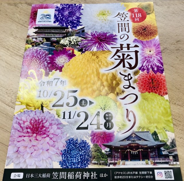 少し曇ってきました。笠間稲荷神社の鳥居をくぐります。もうご存知のことは思いますが「日本三大稲荷神社」と言われているのは伏見稲荷大社(京都府京都市)豊川稲荷(愛知県豊川市)笠間稲荷神社(茨城県笠間市)と言うことになっています。笠間の菊まつりは町中が菊の花で飾られています。この鉢植えの小菊は多くの小中高校で栽培して笠間の通りに出品されています。一の鳥居、二の鳥居をくぐると本殿が見えてきます。参拝する前に手水舎で清めましょう。この青竹から細い水が出ているのですが手水の中身は当然ながら「菊」の「花」で埋められています。水に浮かべた菊の花があちこちに点在している笠間稲荷神社です。まずは、拝礼ですね。笠間稲荷神社には菊の花で形どられた動物もたくさんあります。まるで狛犬のように向かって左が「菊」右側が「まつり」となっていて上には「キツネ」がいます。ここで、面白いことがありました。6〜70代の団体客の方がこの前で写真を撮っていました。そして「もう少し猫の方に寄った方が全部入るよ。」「猫の方ね。」って、猫の訳ないじゃんここは、「稲荷神社、お稲荷さん」「キツネ」に決まってるじゃないイイ年してそんなことも知らないのだと呆れてしまいましたよ。稲荷神社の中は菊、菊、菊のオンパレードです。本殿から鳥居の方に振り返ってみます。菊まつりですから菊の花の三本仕立てもズラリと並んでいます。おキツネさんも大きいのやら小さいのやら神社のあちこちに置かれています。菊人形も展示されています。今年も大河ドラマですね。あっ、菊人形の着せ替えをしています。私は、ほぼ毎回、この着せ替えを見ています。大変な作業ですよ、これって‥雲の合間からたまに日差しがありますが風が吹くと肌寒いです。紅葉も進んできました。菊の花いっぱいの笠間稲荷神社です。明日に続くにほんブログ村にほんブログ村