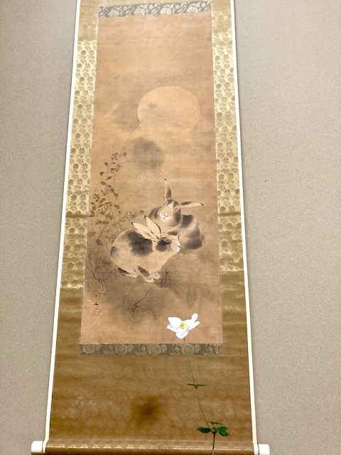 昨夜は「中秋の名月」でしたが完全に曇っていて観ることは出来ませんでした。中秋の名月は農業の行事と結びつき、「芋名月」などと呼ばれることもあります。今年は10月6日が中秋の名月、7日(本日)が満月と日付が1日ずれています。必ずしも名月が満月とは限らないのです。ご存じでしたか昨日からお床の室礼を変えました。中秋の名月に因んで「兎と月」のお軸です。年に一回しか飾るチャンスがありませんがかなり古い物のようです。花も秋らしく芒、子紫式部、もみじを入れてみました。脇床も変えました。短冊にはこう書いてあります。「この丸は月か団子か桶の輪か、角のとれたる人の心ぞ」丸い心を保つのは難しい‥人の心は1日としてじっとしていない。まるで、月の満ち欠けのように刻々と変容してゆくけれどまた、まぁるく光を放つようになる。日本人にとって「月」は信仰の一つであり、農耕の拠り所であり鑑賞の一つでもあります。今夜も「月見酒」と言うわけにはいかないような曇り空です。気温もだいぶ涼しくなって半袖だと肌寒いくらい‥あっそうだ昨夜が「名月」ならば今宵は「十六夜」になってしまうのです。今日の月齢は15.23だから満月だけど十六夜になるわね〜にほんブログ村にほんブログ村