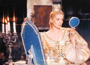 マリリンもオードリーももちろん素敵だけれど、私にとって「永遠の美人女優」の代名詞は、何といってもカトリーヌ・ドヌーヴなのです。今やだいぶ貫禄がついてしまいましたが、若かりし頃の整った美貌は、“怖いくらいきれい”という表現がぴったり。先日ライヴを聴きに行ったホリー・コールが「シェルブールの雨傘」を取り上げていて、そういえばWOWOWで録画したきりだった…と思い出したのが、この「ロバと王女」。この作品も、「シェルブールの雨傘」同様、ジャック・ドゥミ(監督)とミシェル・ルグラン(音楽)のコンビによって作られました。日本ではずっと公開されない「幻の映画」だったのです。シャルル・ペローの童話「ロバの皮」を元に作られた、ミュージカル仕立てのおとぎ話。宝石を生むロバがいる、豊かな王国が舞台です。愛するお妃に先立たれ、「私よりも美しい人と再婚を」という遺言を託された国王が、求婚相手に選んだのは、母ににそっくりな王女だった…と、のっけから目が点になってしまう展開なのですが(笑)決して子どもだましの映画ではありません。何しろ、タイツ姿で国王を演じるのが、かのジャン・マレーなんですから、それだけで画面に満ちるゴージャス感!王女と恋に落ちる隣の国の王子さまは、ジャック・ペランが演じます。後に「WATARIDORI」や「皇帝ペンギン」などの傑作を世に生み出すプロデューサーも、この頃はあどけなさが残る美青年。俳優としては、「ニュー・シネマ・パラダイス」の中年になったトトの役で知られていますね。そしてそして、“青空のドレス”や“星空のドレス”を次々に身にまとう、輝くばかりのドヌーヴさま。トレヴィアン!!「目の保養」とはまさにこのこと、と、うっとりです。大真面目に絵本の世界を映像化しているようでいて、時にシュールな味付けの演出もあり…ふた昔前なら、いわゆる「オリーブ少女」たちが、飛びついて夢中になった類の映画だと思います。王女は、やがて変装のために、ロバの皮をかぶって国を逃げ出すのですが、この「着ぐるみドヌーヴ」がまた、何ともいえず変で(笑)でもやっぱり美しくて。また、そのロバの皮(頭、ついたままです)が、いかにも「今、ロバを殺して剥いできました」…といった感じに、内側の赤い肉が見え隠れしているところ。この“生々しさから逃げない、ぼかさない”感覚が、いかにもフランスの映画だなぁ、という印象でした。【「愛のケーキの作り方」という歌がラブリーです】ミュージカルの名作とみなされる「シェルブールの雨傘」を観ていると、『何も、そんなに無理して歌にしなくても、ふつうにセリフ喋れば…』と思ってしまう私ですが、基本的にミシェル・ルグランの音楽は好きなのです。特に「ロシュフォールの恋人たち」のサントラは、何度聴いたかわからないくらいのお気に入り。映画の方も、ドヌーヴと実姉・フラソワーズ・ドルレアックの競演をはじめ、オールスターキャストが紡ぐお話の糸が、複雑に絡まりあい、最後は見事にまとまっていく、カラフルで楽しい作品で大好きです。私の好きなミュージカル映画は、現実のわずらわしさから少しの間逃れて、心を弾ませ遊ばせる、そういう楽しみを与えてくれます。こういう『メンタルのサプリメント』との出会いが、日々を豊かにしてくれるんだなぁと思います。