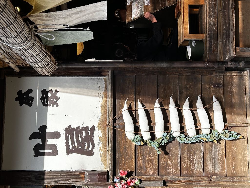 ◇2024年11月17日◇大内宿◇ブログ仲間の皆様、「2人だけのフォトコン」にご投票ありがとうございました。写真A,C,Eは私が撮った写真、写真B,D,Fは家内が撮った写真でした。皆様のご投票の結果、今回は私の勝ちとなりました。やったー昼食の予約時間まで10分切ったので、見晴台から急いで下ることに・・・大内宿の道を小走りで移動し、何とか予約時間に間に合いました。しばらくして三澤屋で予約の席に案内されました。オーダーしたのは大内宿名物、高遠そば・・・ネギを箸代わりにして食べる面白いそばなのです。(ネギが美味しくて、4分の1ぐらい食べてしまったら、体中が臭くなってしまい、家内に叱られてしまった。)(続く)クリックしていただけますと嬉しいです!